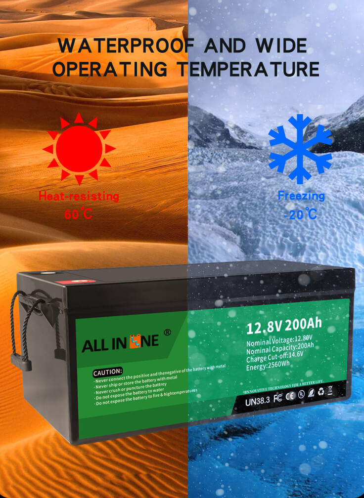 4. ອຸນຫະພູມໃນການເຮັດວຽກທີ່ກວ້າງ: ແບດເຕີລີ່ LiFePO4 ມີລະດັບອຸນຫະພູມເຮັດວຽກກວ້າງ -20 ° C ~ 60 ° C.
