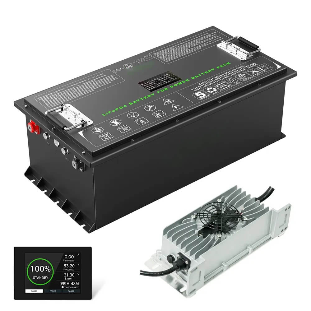 【ຈໍ LCD Smart Battery Monitor】ALL IN ONE lithium golf cart battery offers robust acceleration and performance, enabling users to conquer challenging terrain and extend their golf range up to 50 miles on a single charge.