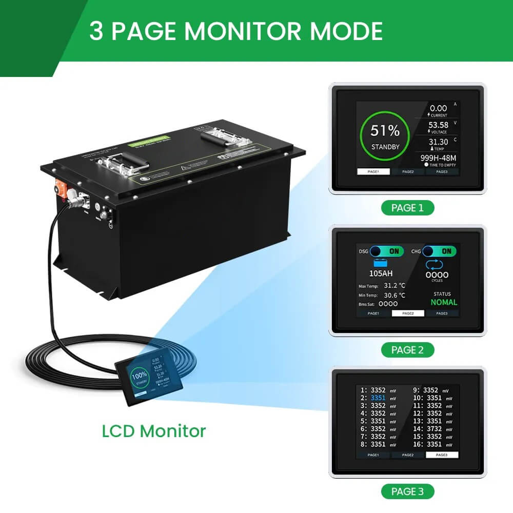 | LFP72-50 | 76.8V | 50Ah | 3840Wh | 470*330*150mm | ≈50kg |
