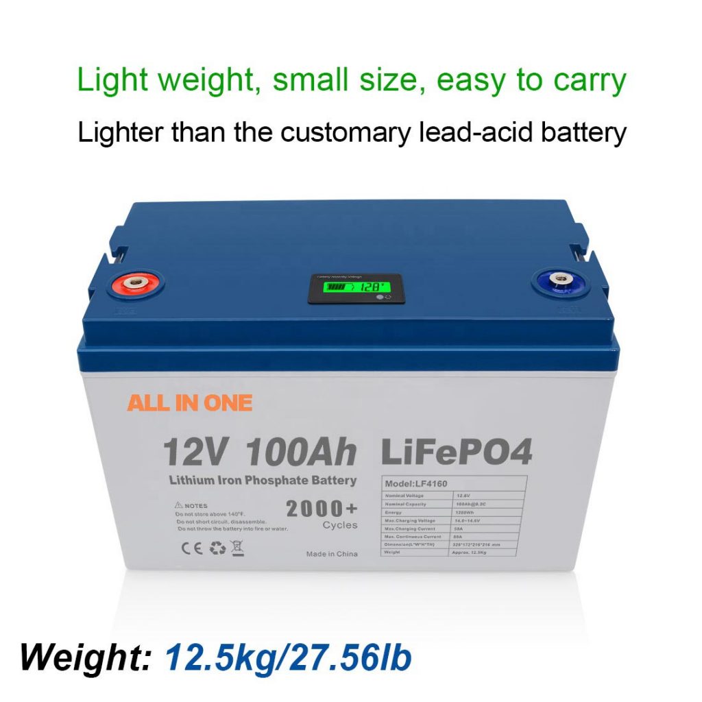 weight ນໍ້າ ໜັກ ເບົາ: ປະມານ 40% ~ 50% ຂອງນ້ ຳ ໜັກ ຂອງແບັດເຕີຣີອາຊິດຊຽມທີ່ປຽບທຽບໄດ້.